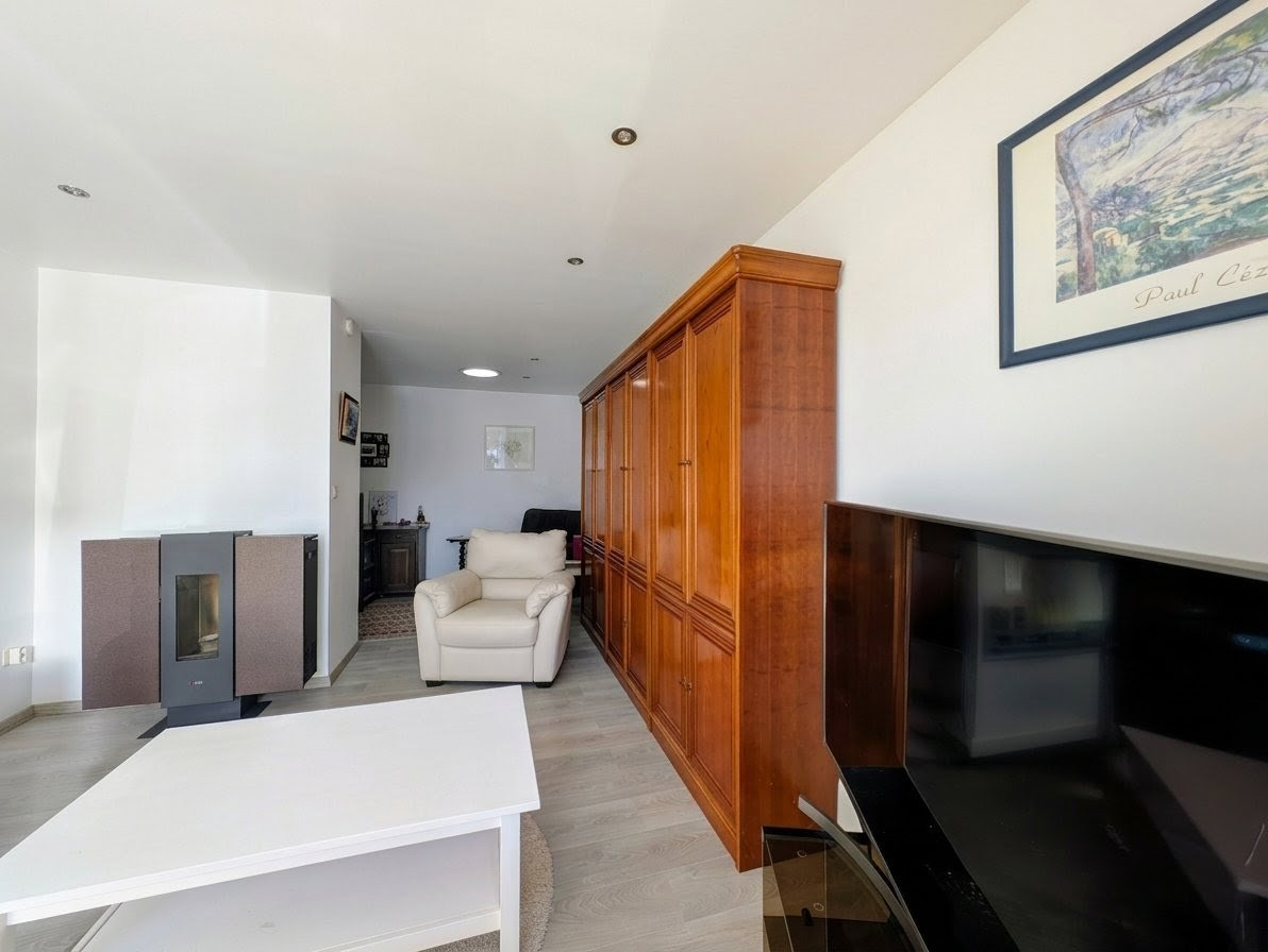 Pensée pour un confort optimal et une efficacité énergétique remarquable, la maison est équipée de panneaux solaires, d’une pompe à chaleur récente et de poêles à pellets à chaque niveau.
