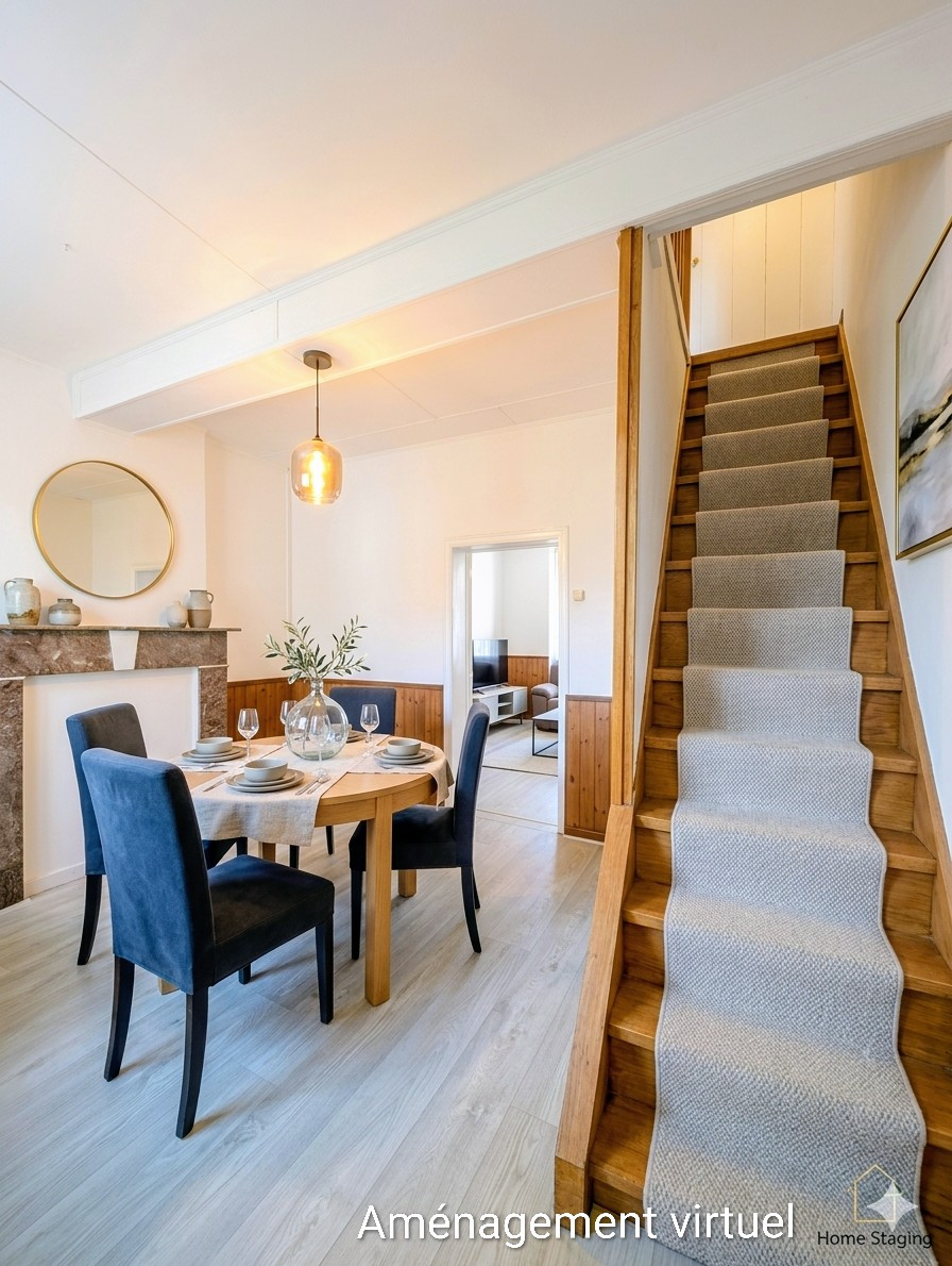 Dès l’entrée, vous découvrez un salon accueillant menant vers un séjour lumineux avec vue sur un agréable jardin clôturé d’environ 100 m², idéal pour profiter des beaux jours en toute tranquillité. La maison dispose également d’une cuisine semi-équipée ainsi que d’un WC indépendant au rez-de-chaussée.