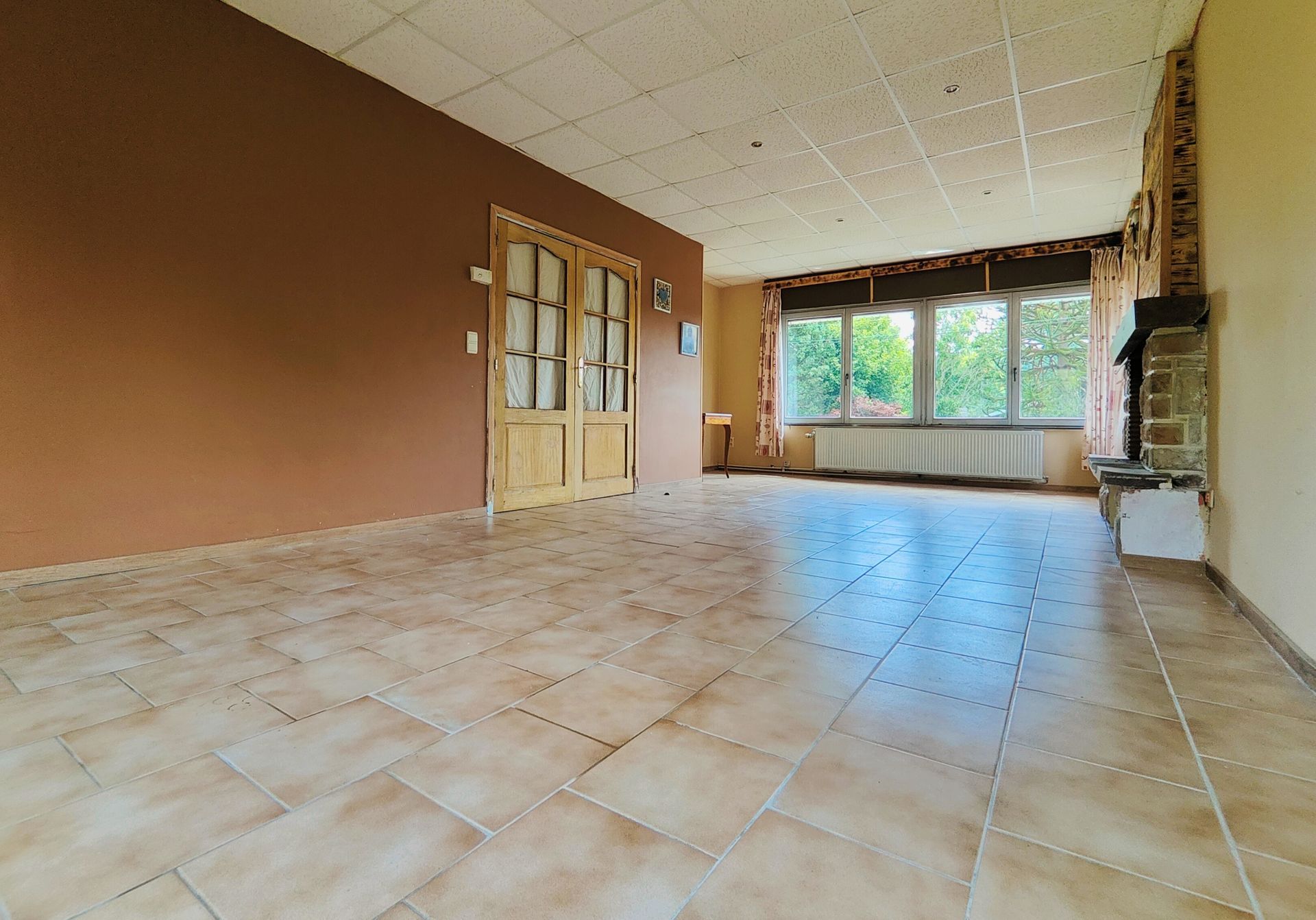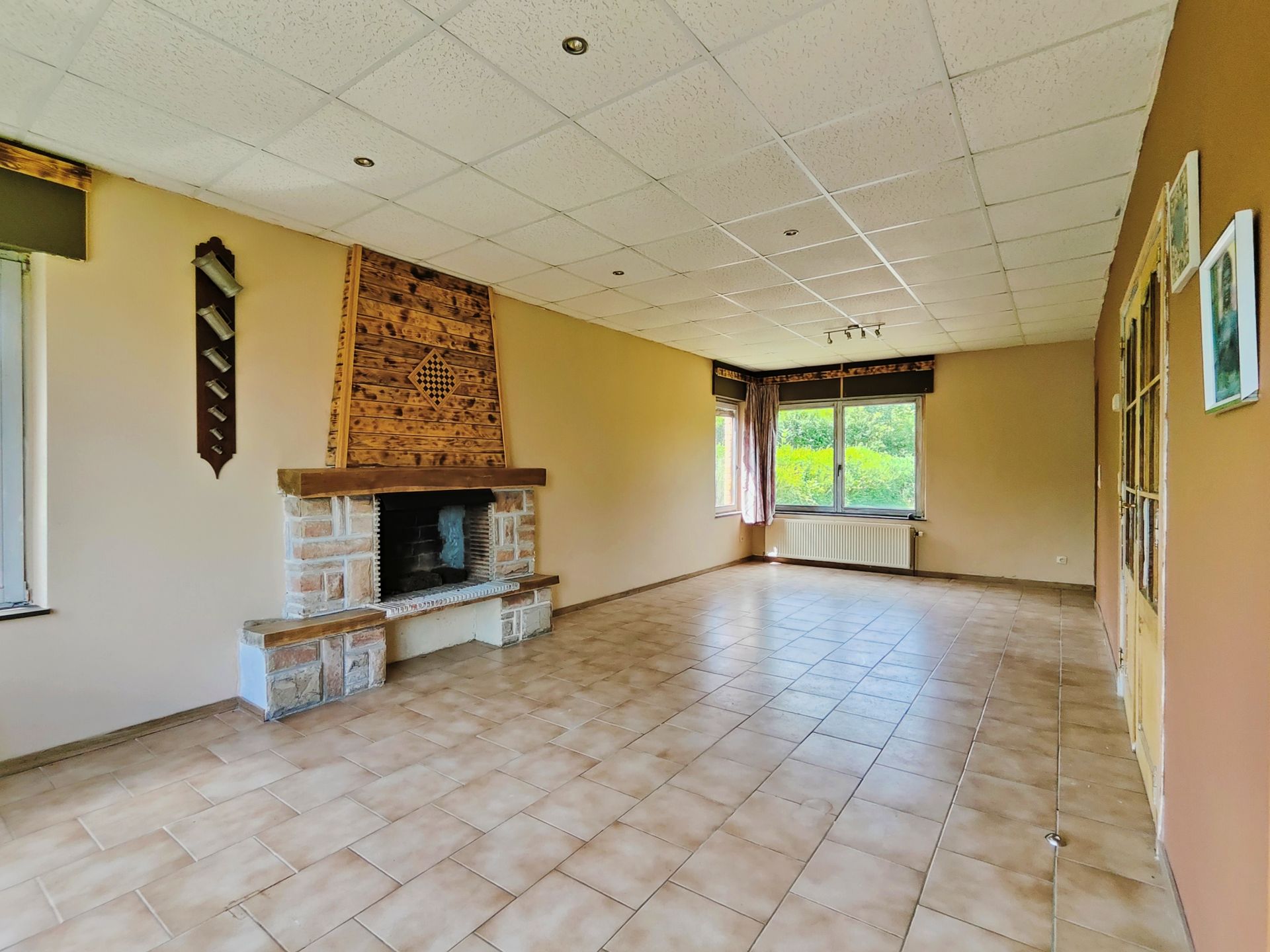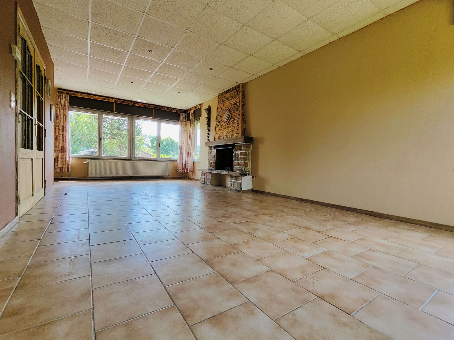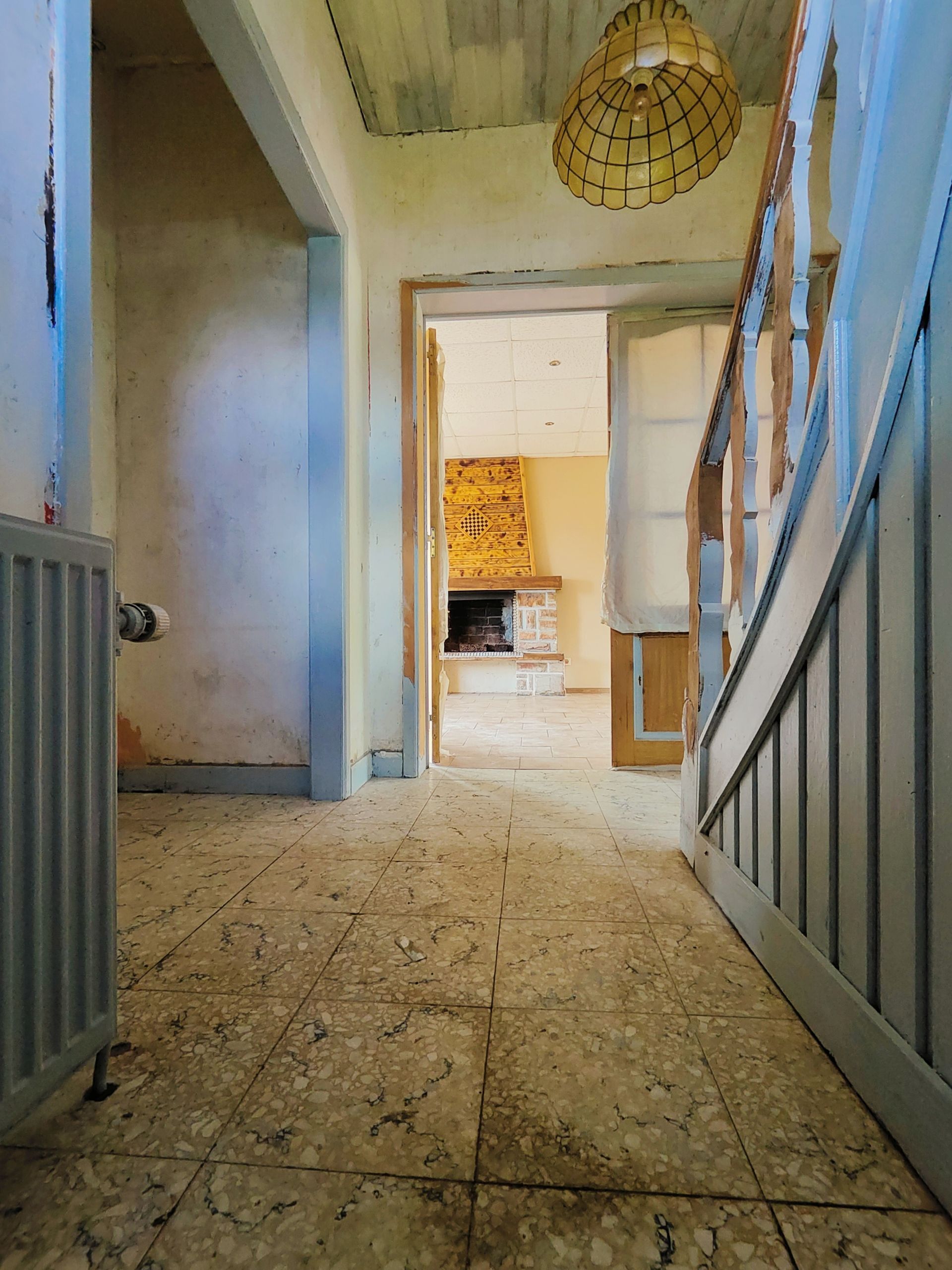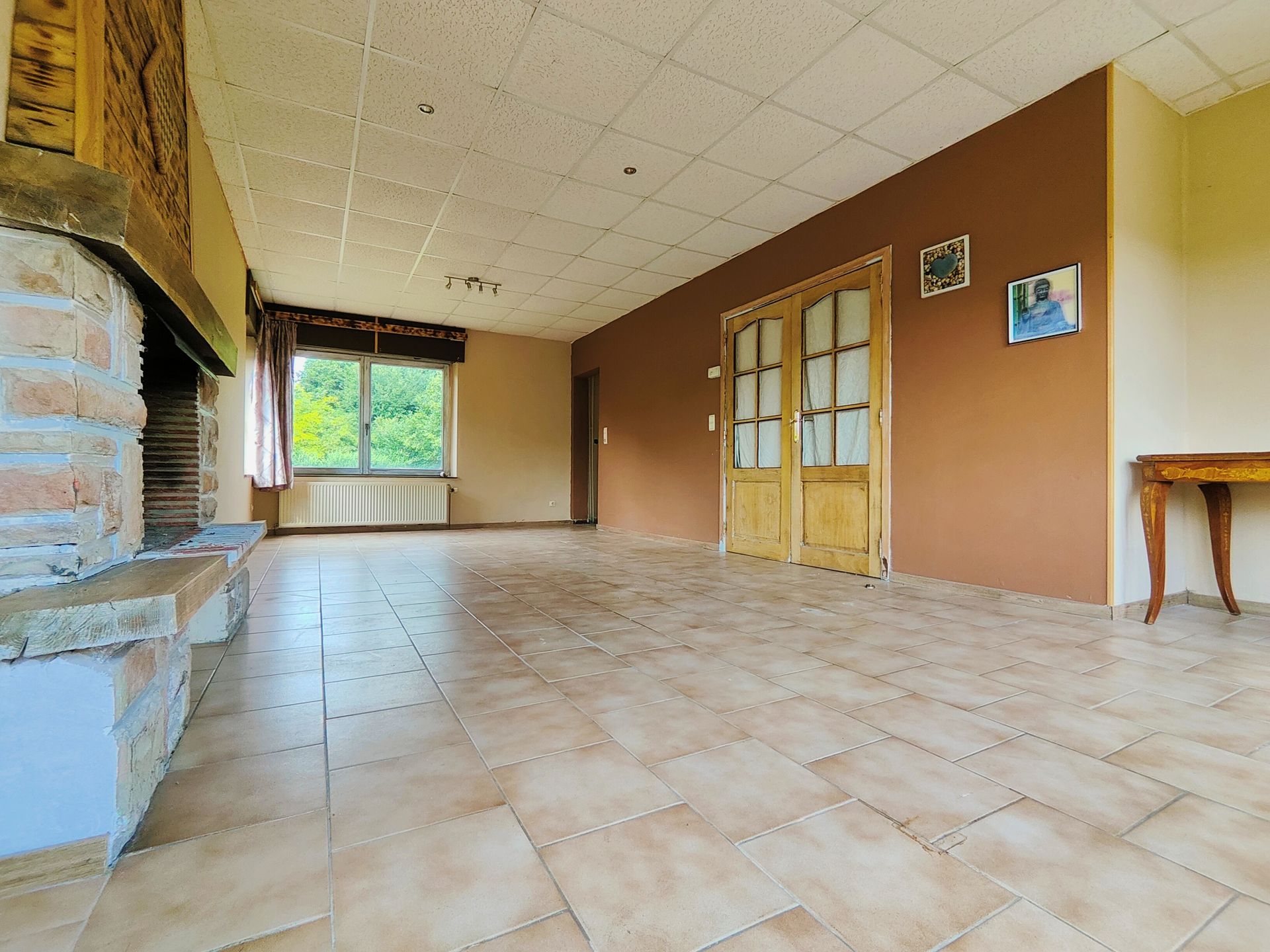 Rez-de-chaussée : Vaste séjour lumineux avec un âtre et une vue imprenable sur la vallée, Cuisine (à rénover), Salle de bains, Wc individuel, Terrasse donnant sur le jardin arrière