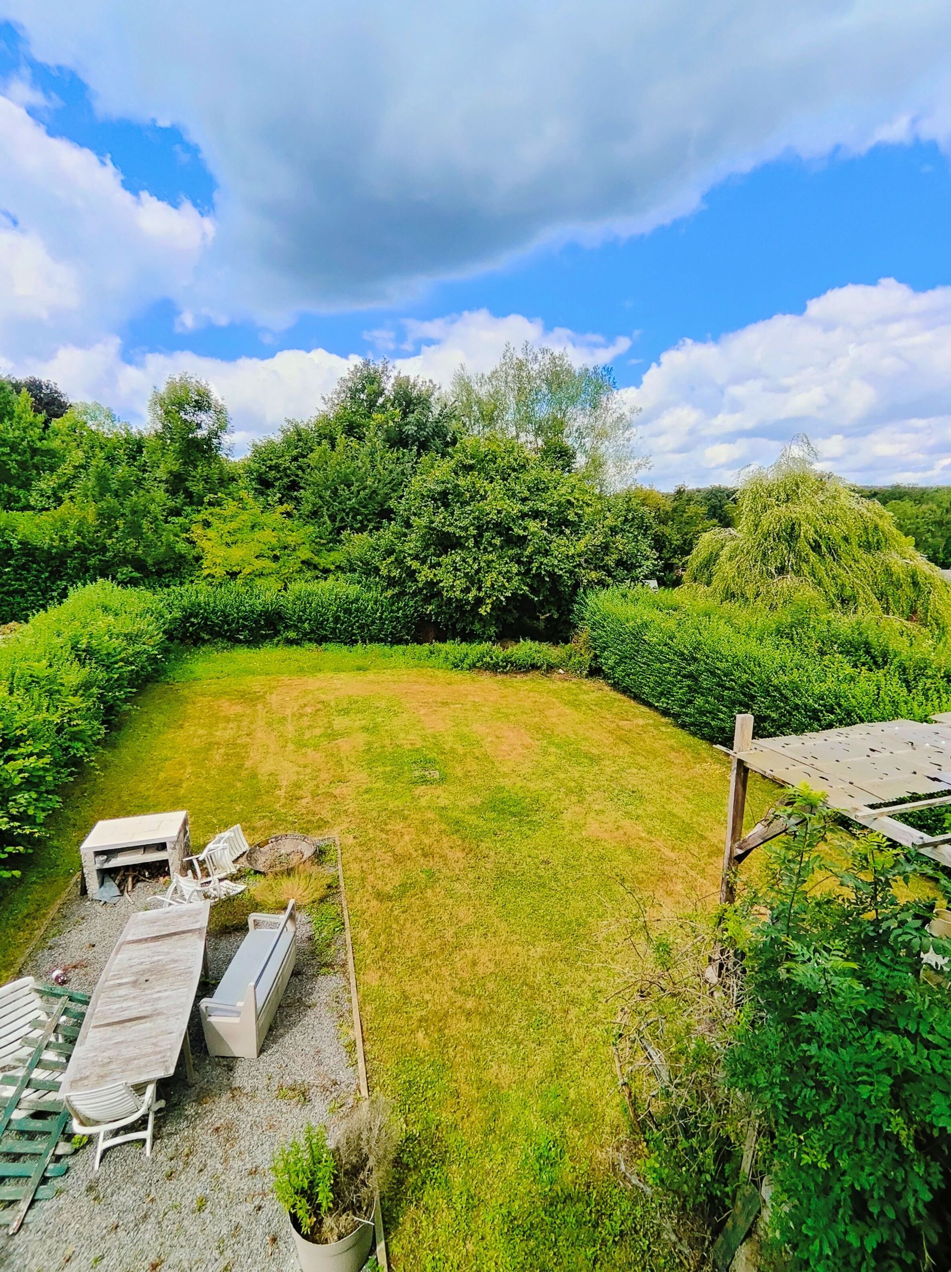 Le fond de la parcelle donne sur un bois privé, offrant un écrin de verdure et une intimité totale, sans accès direct